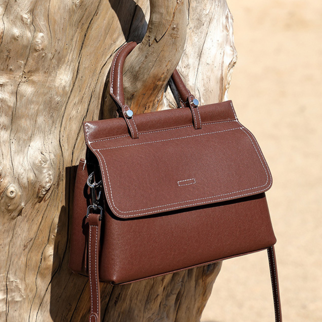 Diese stilvolle Leder-Schultertasche bietet Platz für alles Wichtige – ideal für Büro, Stadt oder Bücherei. Der verstellbare Gurt passt sich Ihrem Tag flexibel an.