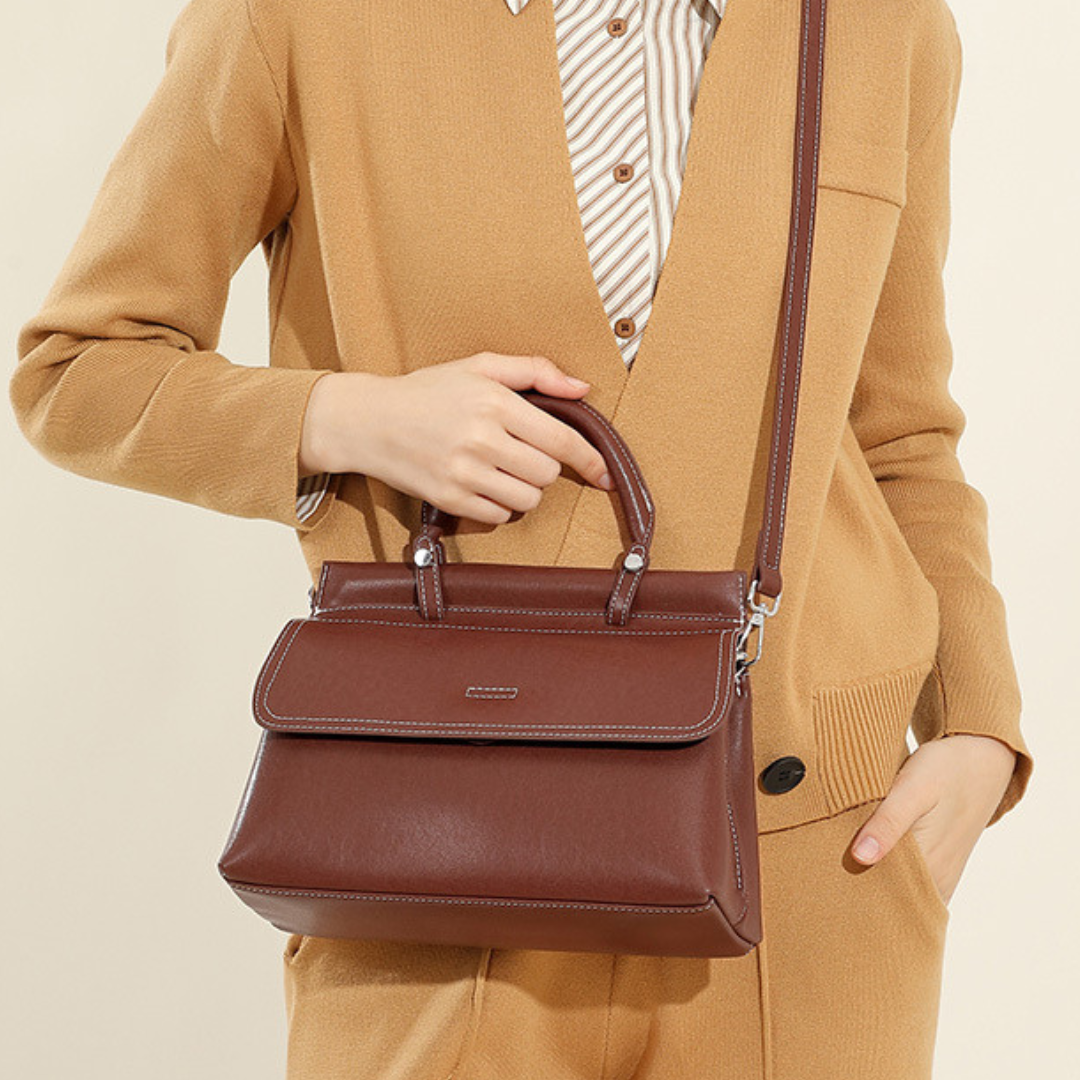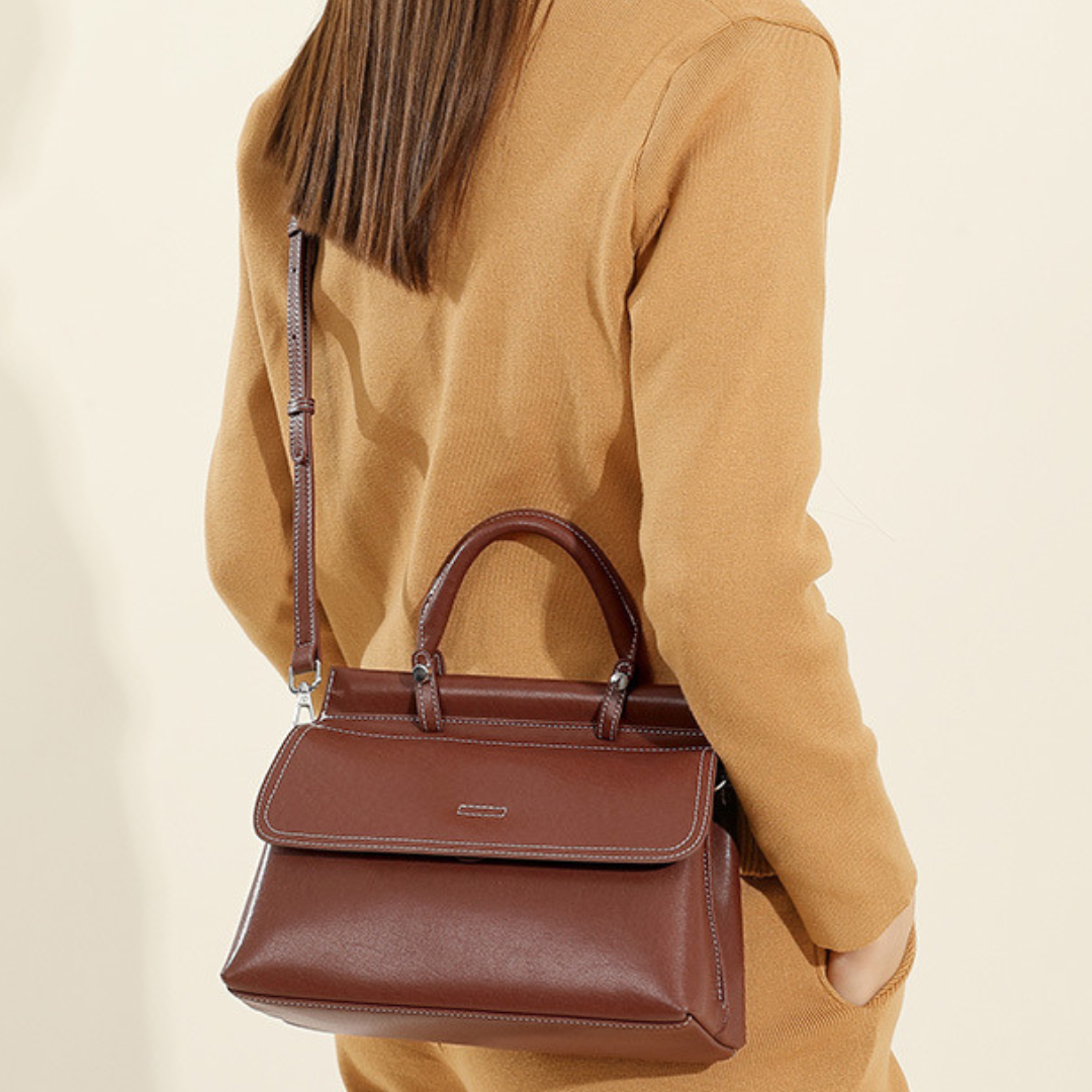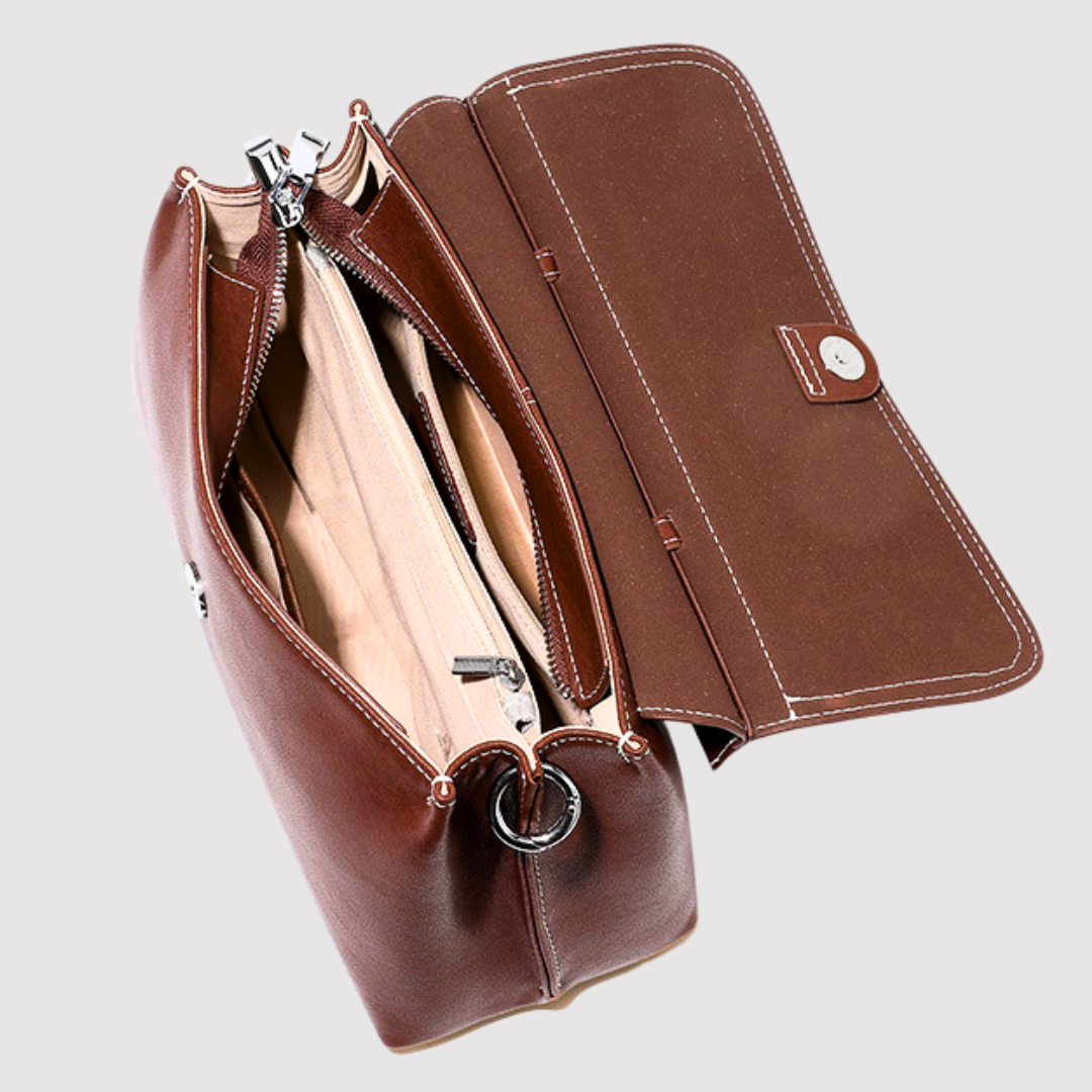 Diese stilvolle Leder-Schultertasche bietet Platz für alles Wichtige – ideal für Büro, Stadt oder Bücherei. Der verstellbare Gurt passt sich Ihrem Tag flexibel an.